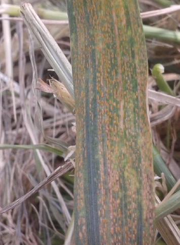 Roya de la hoja de la cebada (Puccinia hordei)